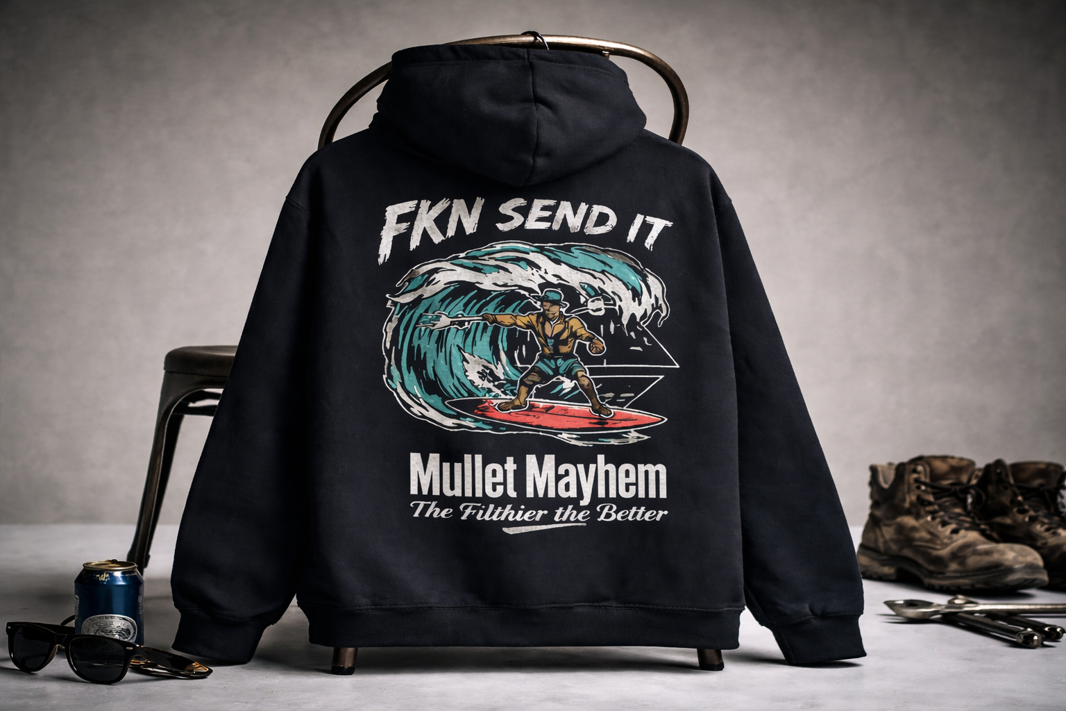 Mullet Mayhem is more than a brand -it’s a lifestyle.Built for chaos, loud nights, dusty roads, and full-send energy.If you live wild and wear it proud, you’re already one of us.